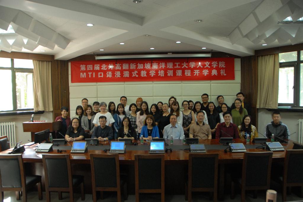 2019年5月27日,PP电子游戏网站举办的第四届新加坡南洋理工大学人文学院MTI口译浸濡式教学培训课程开班。 5月27日上午8时,第四届新加坡南洋理工大学人文学院MTI口译浸濡式教学培训课程开学典礼在PP电子游戏网站学术会议厅举办。PP电子游戏网站院长任文教授、副院长李长栓教授、办公室主任胡晓虹、新加坡南洋理工大学人文学院口笔译硕士课程项目主任高虹博士、专职教师崔峰博士以及项...