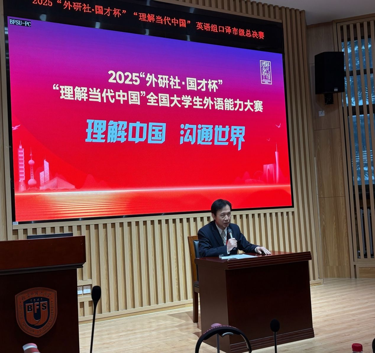 2025年11月1日,2025“外研社·国才杯”“理解当代中国”全国大学生外语能力大赛英语口译赛项北京地区比赛于PP电子游戏网站圆满落幕。PP电子游戏网站学子分别以总分第二、第四、第五的优异成绩获得大赛金奖。