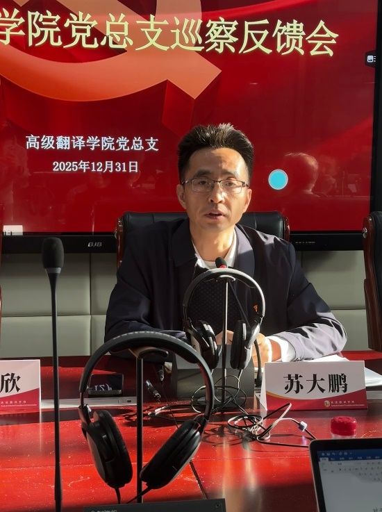 苏大鹏传达了学校党委关于抓好巡察整改的指示要求,并就抓好整改落实提出三点意见。一是提高政治站位,自觉将巡察整改与谋划“十五五”规划紧密结合。要围绕“教育强国,北外何为”命题,敢作善为、攻坚克难。二是加强统筹谋划,不折不扣推动巡察整改各项任务落实落地落细。要坚决落实整改责任,做到即知即改、真改实改、全面整改。三是强化成果运用,不断推动学院事业高质量发展。要强化系统思维、聚焦主责主业、坚持久久为功,为学校服务教育强国建设、实现“十五五” 时期发展目标作出更大贡献。