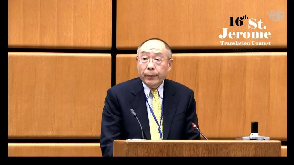 联合国维也纳办事处中文科科长、联合国译训班校友韩晓信先生作为中文组评委代表发言