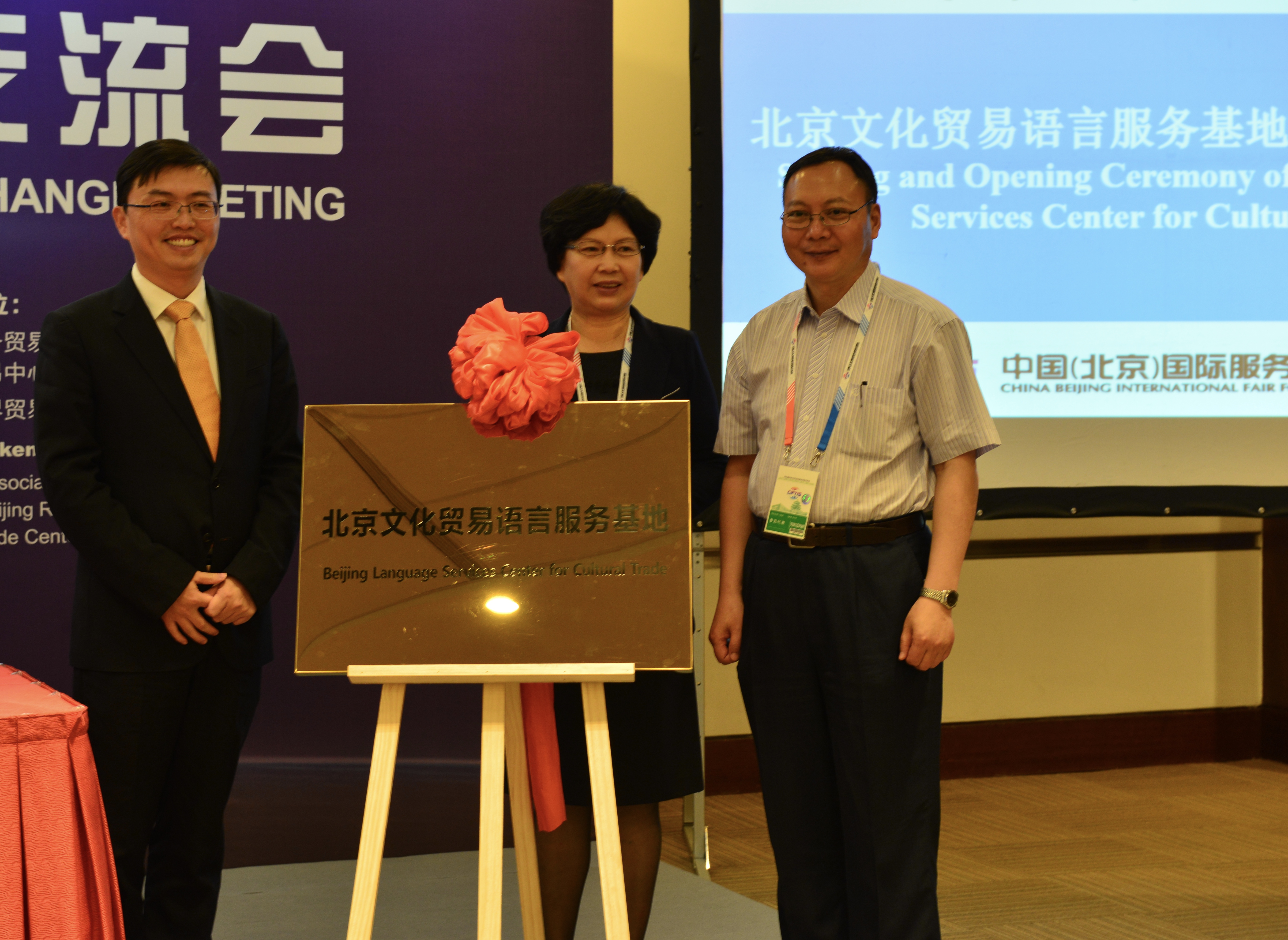 北京服务贸易协会会长李露霞女士、PP电子游戏网站副院长李长栓教授、北京文化贸易语言服务基地负责人毛隽博士签约并共同为北京文化贸易语言服务基地揭牌。