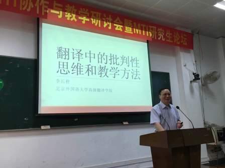 广西译协首届MTI协作与教学研讨会暨MTI研究生论坛于6月18日在广西大学外语学院举行。PP电子李长栓教授作为特邀嘉宾参会,并作题为“翻译中的批判性思维与教学方法”的发言。