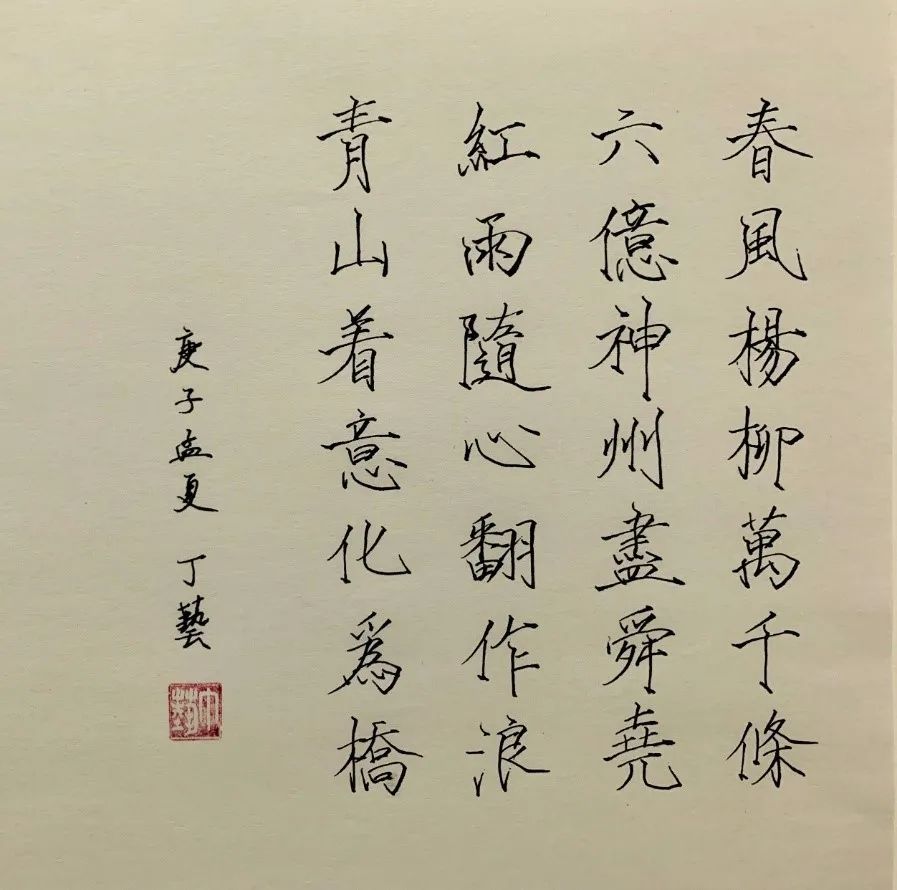 “本作品选取自毛泽东的诗作《七律二首·送瘟神》,写于1958年我国消灭血吸虫病之时。选段描写了新中国一片春意盎然,人民意气风发的景象,愿此刻我们同舟共济,共克时艰,迎接春天的到来。”
