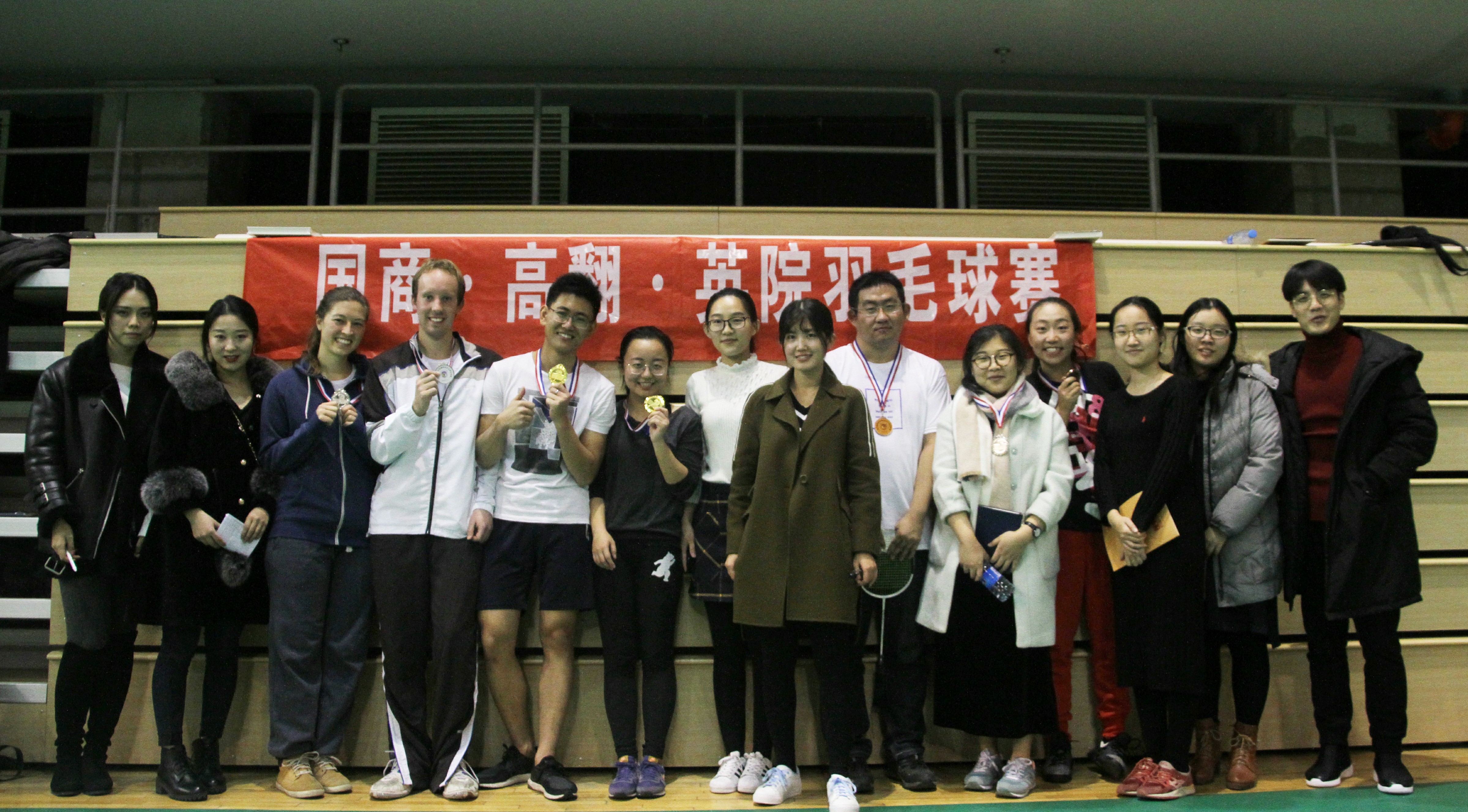 2017年11月25日、26日,PP电子游戏网站、国际商学院和英语学院联合举办了第三届三院羽毛球友谊赛。经过激烈角逐,高翻斩获了男双(陈艺夫/陈阳)冠军,男单(潘云昊)、女双(付丽媛/杨瑷淩)亚军以及女单(田丽娜)、混双(陈馨/陈艺夫)季军。
