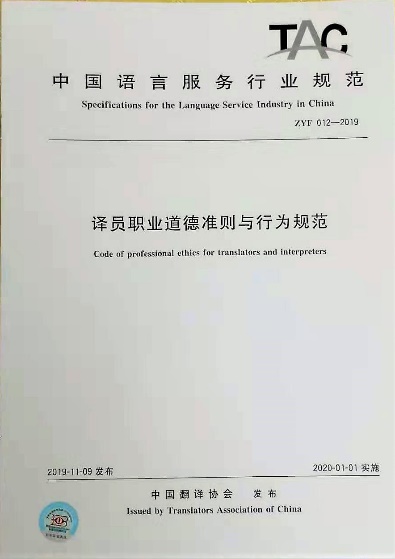 2019119日,在新中国翻译事业70年论坛暨2019中国翻译协会年会大会上,中国翻译协会正式发布了《译员职业道德准则与行为规范》等三项团体标准规范。