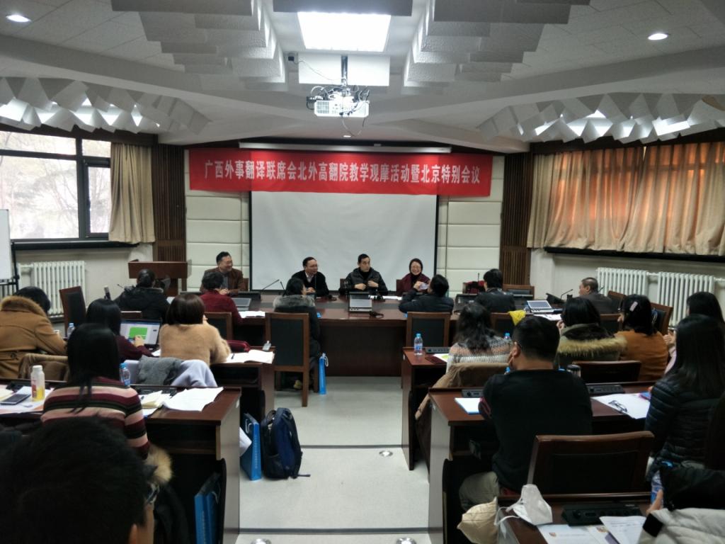 2017年11月21日至23日,广西自治区外事翻译联席会组团前来PP电子游戏网站观摩翻译教学,并由PP电子游戏网站主办了联席会的北京特别会议。