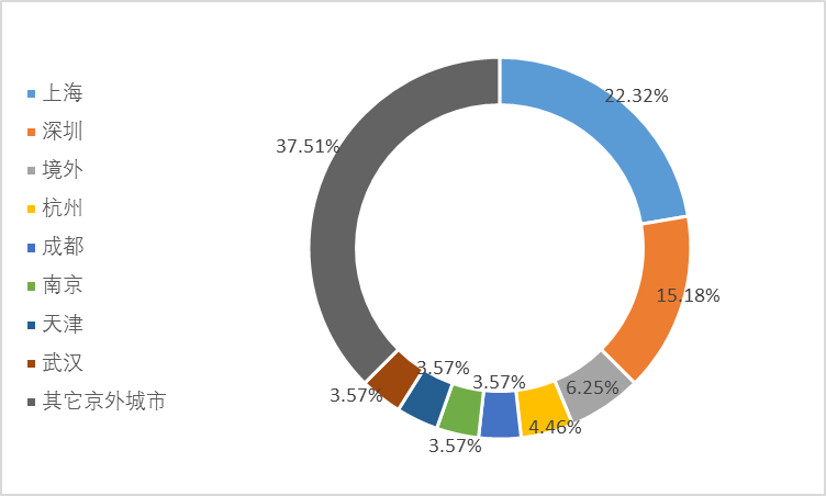 在378人中,京内就业者266人,约占70%;京外就业者112人,约占30%。京外就业者集中在上海(22.32%)、深圳(15.18%),包括境外(6.25%),以及杭州、成都、南京、天津、武汉等大城市。