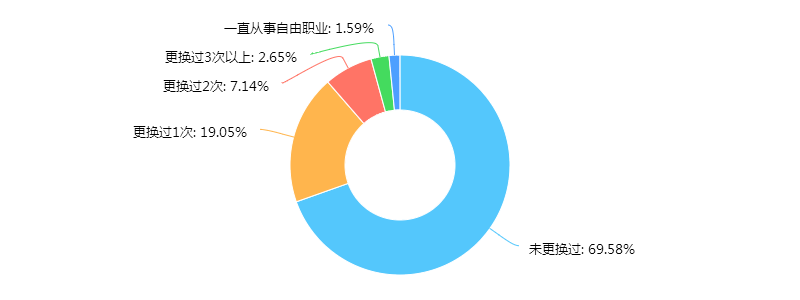 当问及是否更换过工作时,将近70%的人没有换过工作。换过一次的,19%,换过两次的,7%。可见,大多数人对自己的工作感到满意。